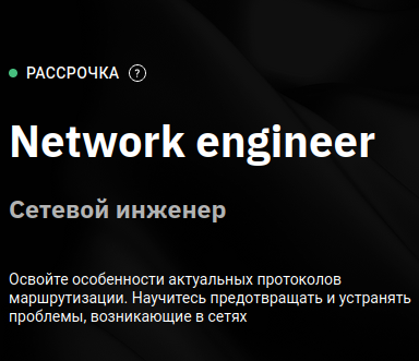 Вы сможете настраивать и управлять сетями проектов, а также самостоятельно оперативно устранять возникающие поломки. Вы получите все необходимые Middle-компетенции: проектирование, безопасность, траблшутинг и т.д. Дальше вам останется нарабатывать опыт и определяться с траекторией развития: по пути проектировщика или Senior-специалиста/ тимлида команды сетевых инженеров.